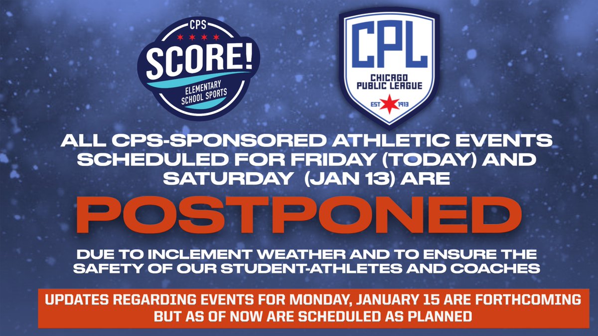 Source : allevents.inChicago Public League Athletics on X: “Per District wide guidance